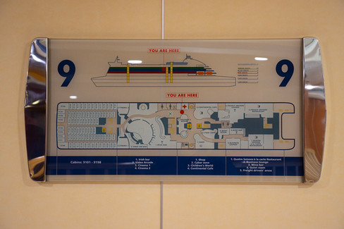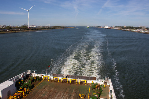 On Sunday 7 September I drove to Eindhoven to pick up Onno and Vadym, and we arrived well on time at the P&O terminal of Europoort. Parking the car was easy with good signage and help from stewards. We could park right opposite the ship that was already docked at her berth. It gave us some time to photograph her before we went inside to the ticket office.