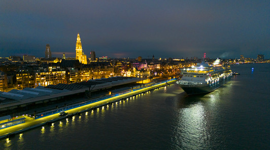 And yet another quick stop with the drone in Antwerp, this time the Balmoral would arrive in the late afternoon when it was already getting dark and cold. It resulted in some interesting photos of her arrival during nightfall both with the drone and the regular camera.